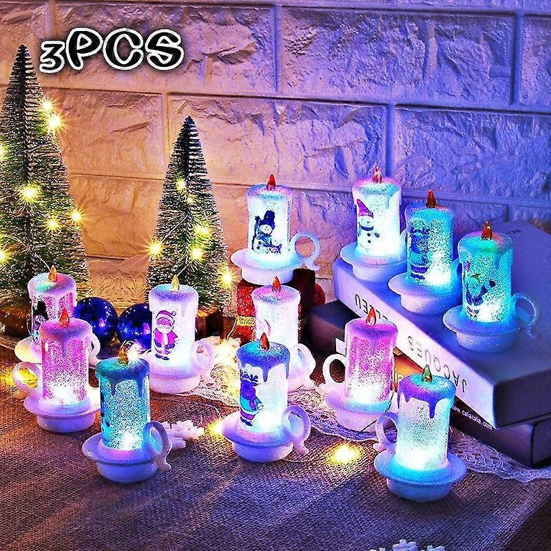 3PCS/Set Christmas Small Night Lights LED Electronic Candles Snowman Lights Christmas Desktop Decorations Random Style