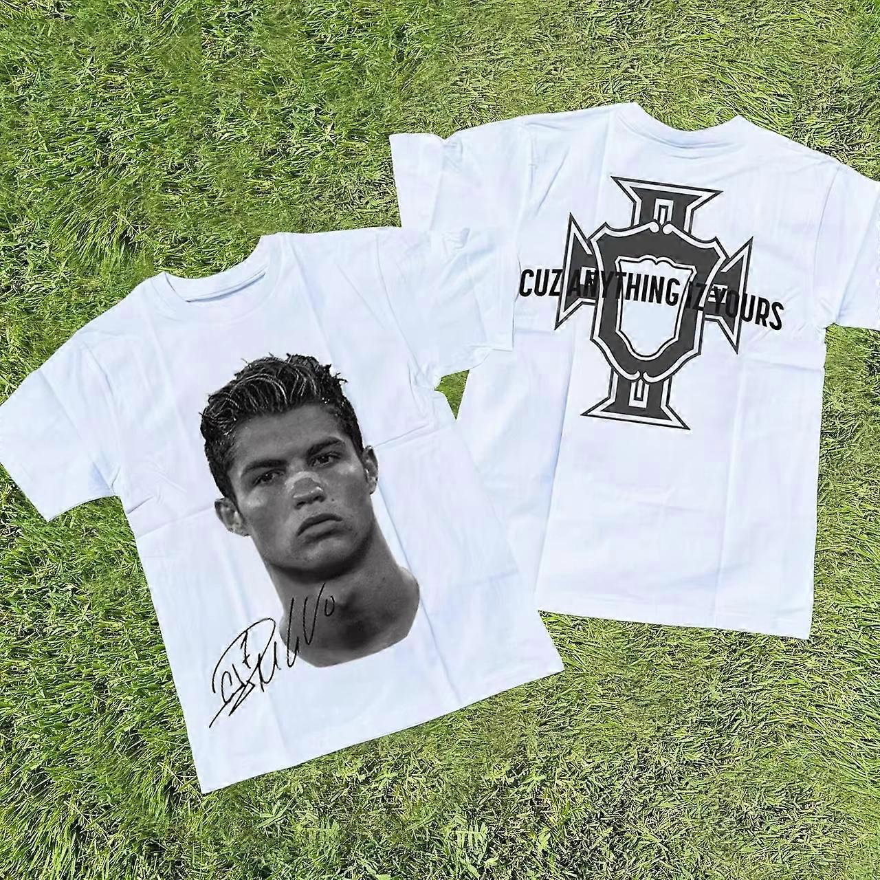 2025 New Summer Soccer Superstar Portrait Print Unisex Loose Cotton Short-sleeved T-shirt& Casual Shorts
