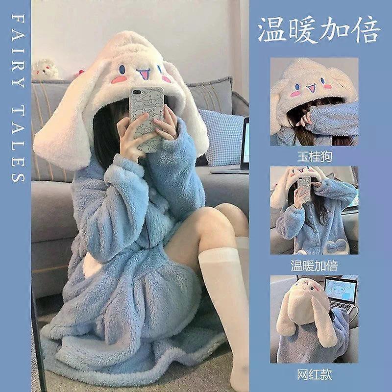 Hot Kawaii Sanrio Cartoon Pajamas Hello Kitty Girls Velvet Nightgown Couple Sweet Long Bathrobe Nightgown Casual Home Wear Set