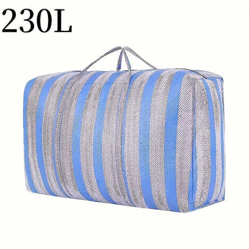 Oversized Heavy-duty Mobile Bag with Zipper and Handle Featuring Blue and White Striped Design, Reusable