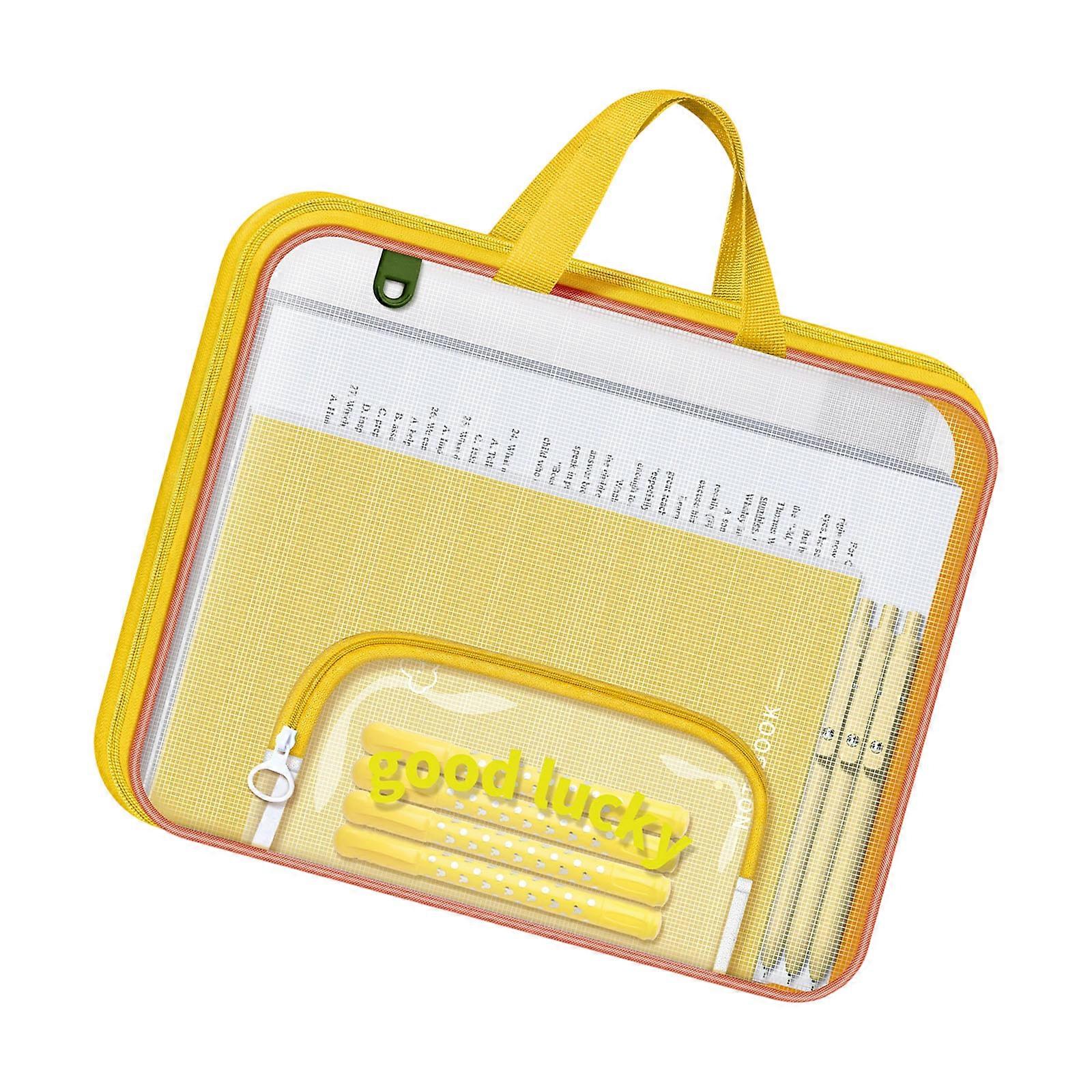 Student Accessory Mesh Document Pouches Zippered Closure Carry Strap Secure Transport School Office Supplies Yellow
