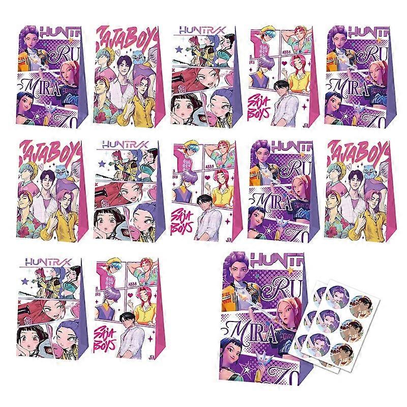 12pcs KPop Demon Hunters Gift Paper Bag Anime Kids Birthday Party Candy Cookie Bakery Packaging Bag Cute Party Decoration Bags