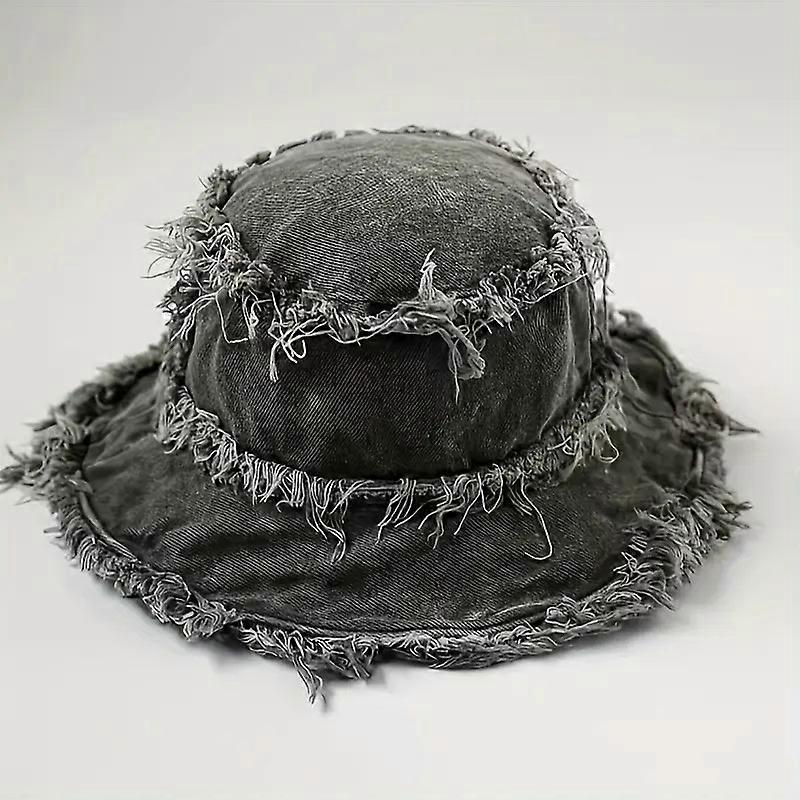 Raw Hem Denim Bucket Hat Letter Label Basin Hats Stylish Versatile Lightweight Fisherman Hats-Daily wear matching and shading