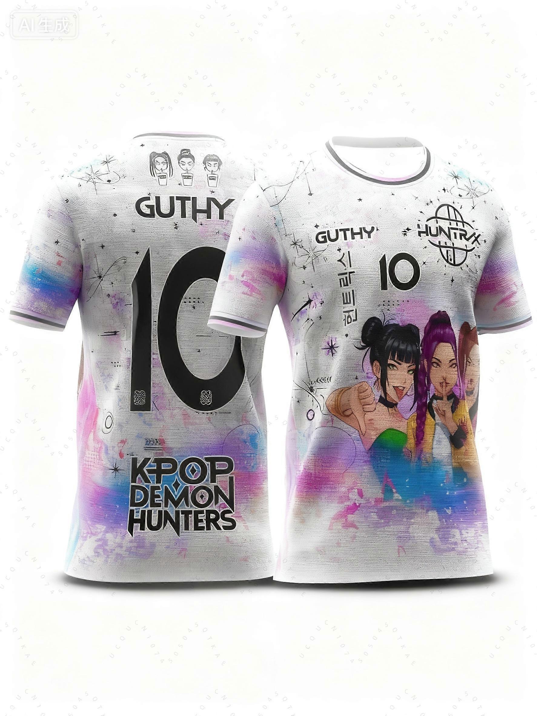 Hot Korean Fashion Trend Jersey KPop Demon Hunter Oversized Sports Shirt Men's And Women's Fashion Trend Short Sleeved T-Shirts