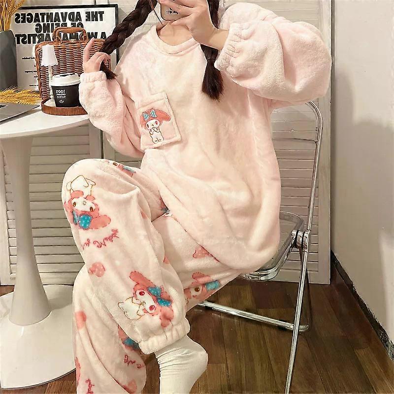 Hot Kawaii Hellokitty Autumn Winter Pajamas Girl My Melody Long-Sleeved Trousers Sweatshirt Sweet Couple Warm Home Clothes Set