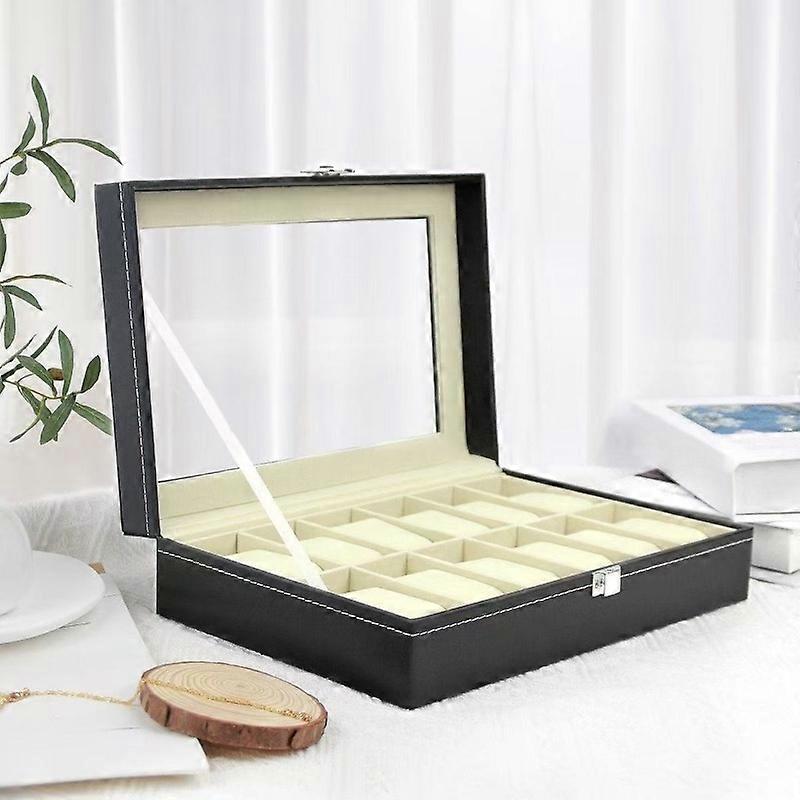 LIUSHADUOLA 12-Compartment Watch Box with Display Lid | Thick Faux Leather, Removable Soft Padding, Large Capacity Storage