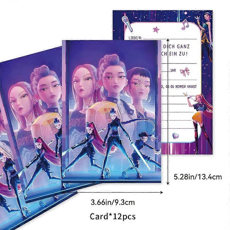 12pcs KPop Demon Hunters Party Invitation Card Anime Kids Birthday Greeting Card Party Supplies Baby Shower Decoration Gifts