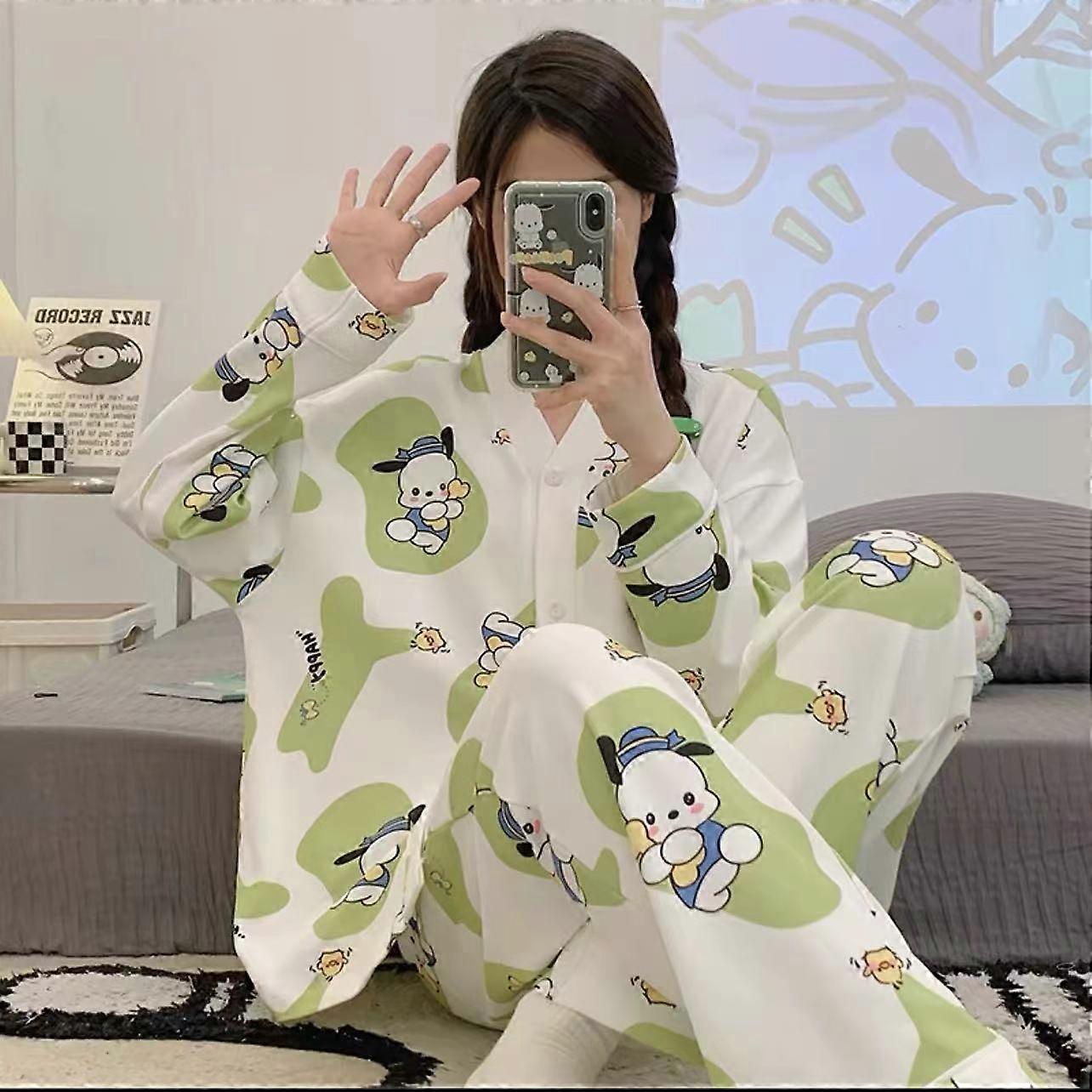 Kawaii Long-Sleeved Tops Pajamas Girl Sweet Hello Kitty Cute Pajama Pants Kuromi Casual Pants Pochacco Home Wear Set