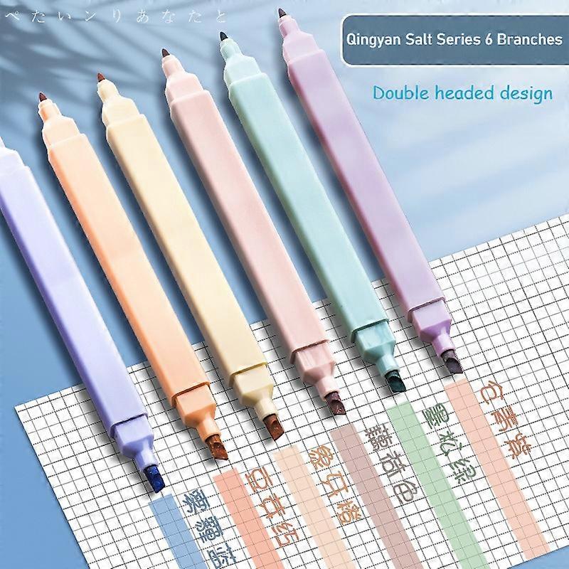 6pcs Pastel Highlighter Set, Color Markers for School Office, Cute Japanese Stationery Supplies, Soft Neon Study Gift (6 Colors)