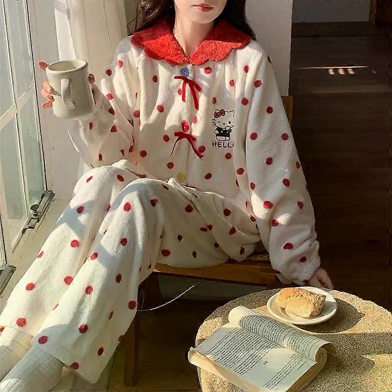 Hot Kawaii Hello Kitty Coral Velvet Pajamas Girls Pajamas Autumn Winter Thickened Cartoon Cute Tops Casual Wear Home Clothes Set