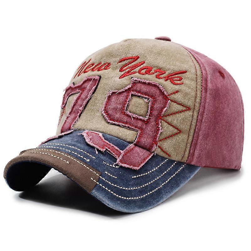 New York 79 Embroidery Baseball Cap Vintage Color Block Washed Distressed Sun Hat Breathable Adjustable Dad Hats For Women Men
