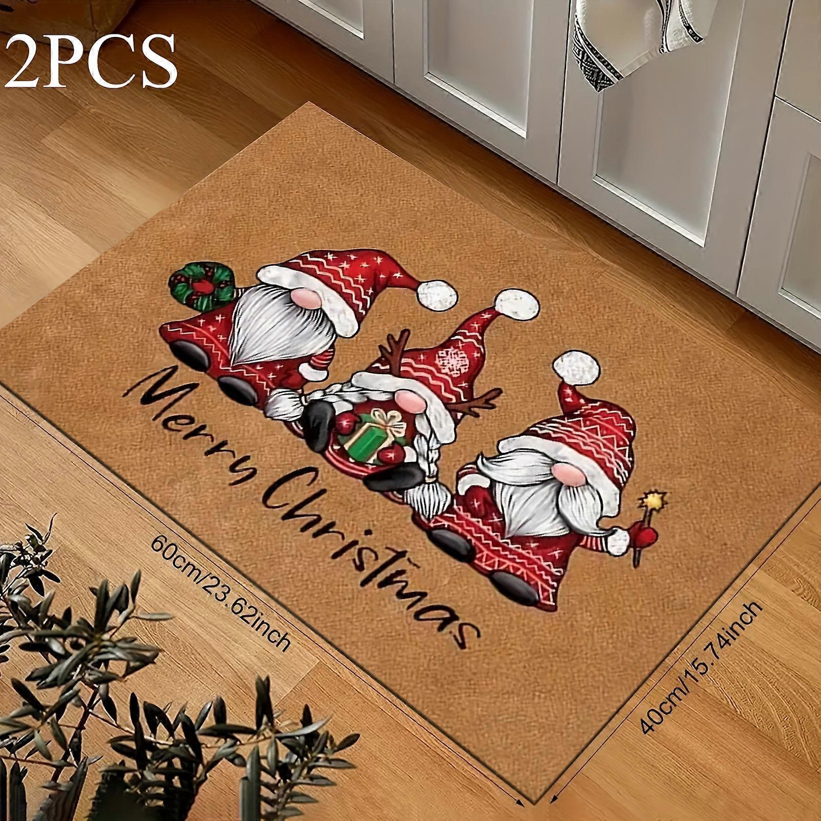 2pcs Merry Christmas Gnome Welcome Doormat,Indoor Outdoor Mat, Playful Design, Durable Fabric, Seasonal Decor, Holiday Shoppers