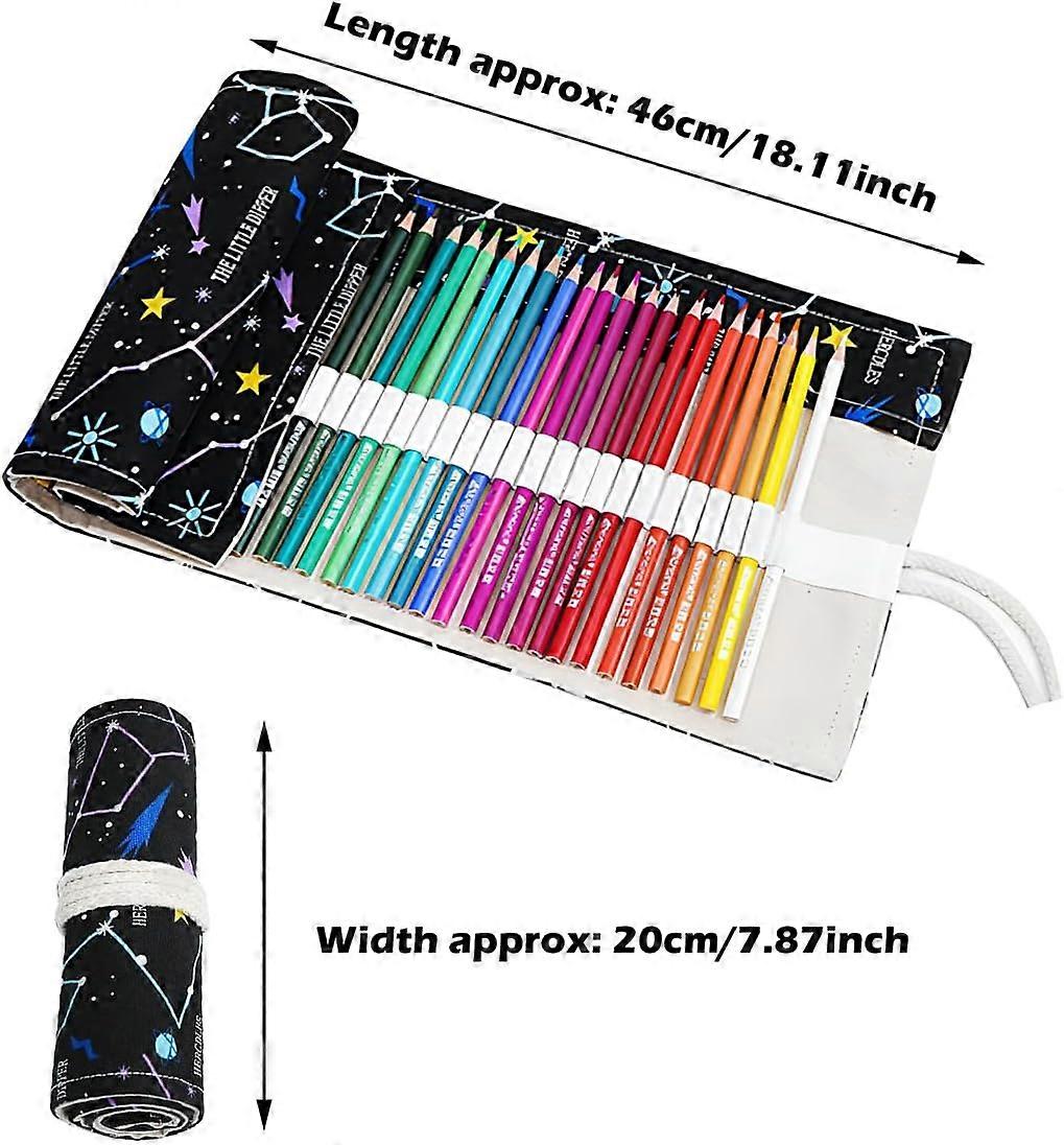 You will receive two rollable pencil cases with constellation motifs Each roll case has 36 holes The unfolded size is 46cm20cm LxW It can be used to store different colors of pencils and different types of brushes