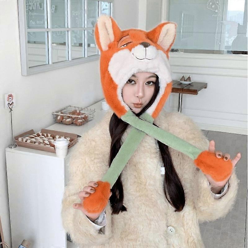 Zootopia Nick Plush Hat Anime Cute Moving Ears Warm Neck for Women Girl Winter Thickened Fleece-lined Earflap Hat Cosplay Props