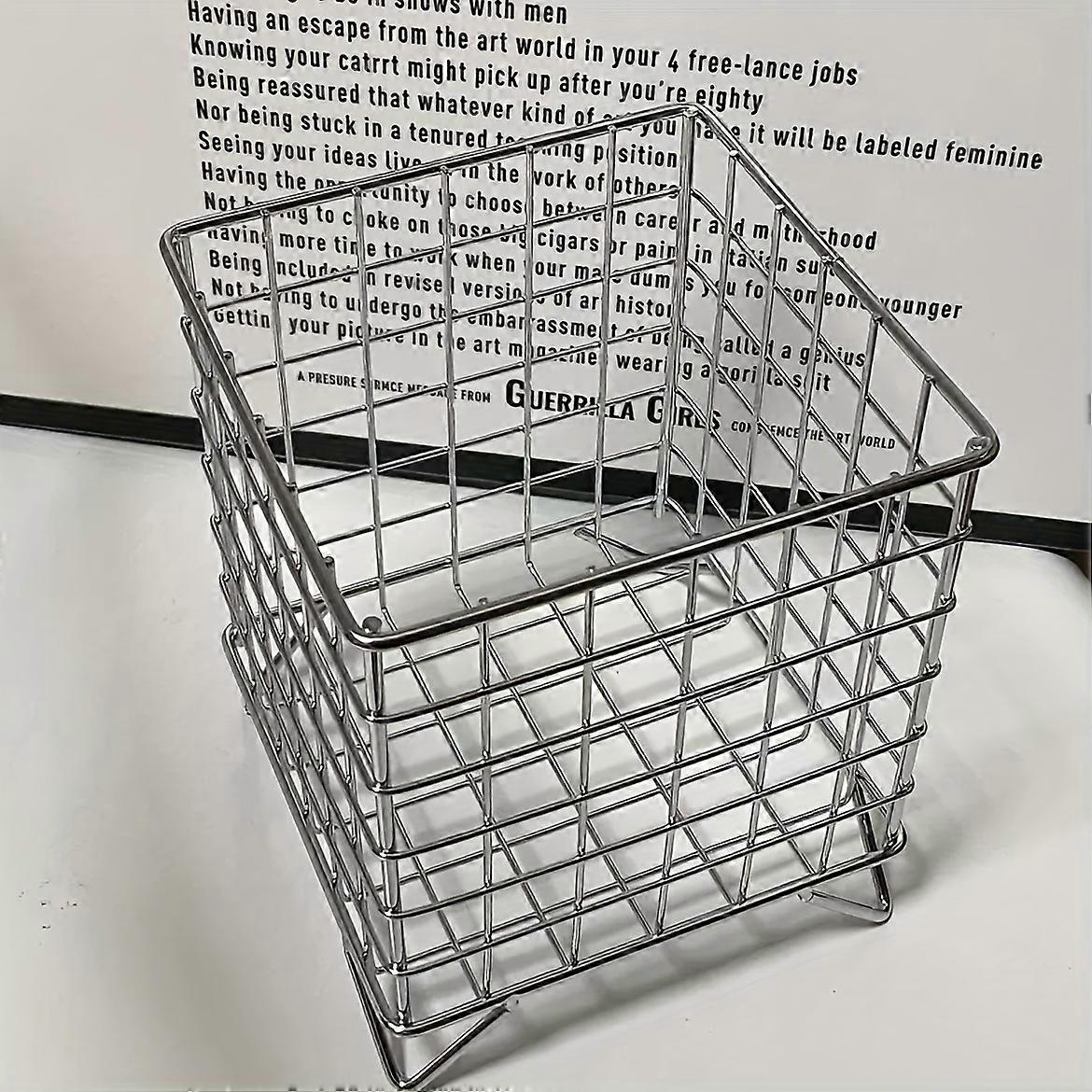 1pc Modern Nordic Style Stainless Steel Desktop Storage Basket Office Supplies Storage Basket Durable Metal Grid Design