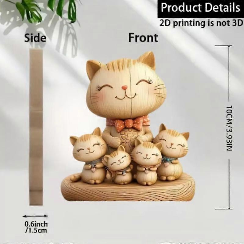 1pc 2D Flat Print - Handmade Kitten Couple Wooden Sculpture, Charming 2D Gift for Cat Lovers
