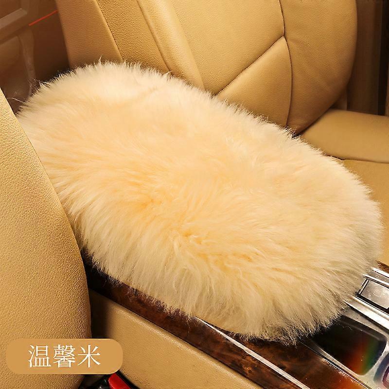 Pure Wool Car Armrest Box Cushion Winter Plush Armrest Cover Sheepskin Center Handrest Support Padding for Women Interior Pink