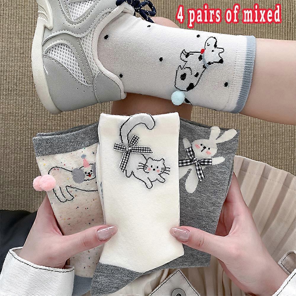 4 Pairs of Autumn And Winter Women'S Cartoon 3D Animal Butt Cat Ins Trendy Mid-Tube Socks Cute Abstract Funny Everyday Socks