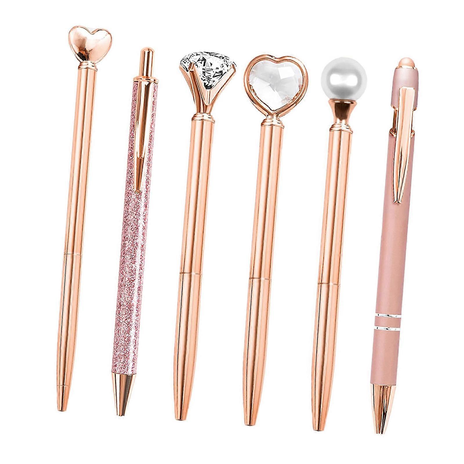 6Pcs 0.5mm Smooth Writing Oil Pen Medium Point Plastic Ballpoint Pen Ball Pen for Office School Students Writing Pen rose gold