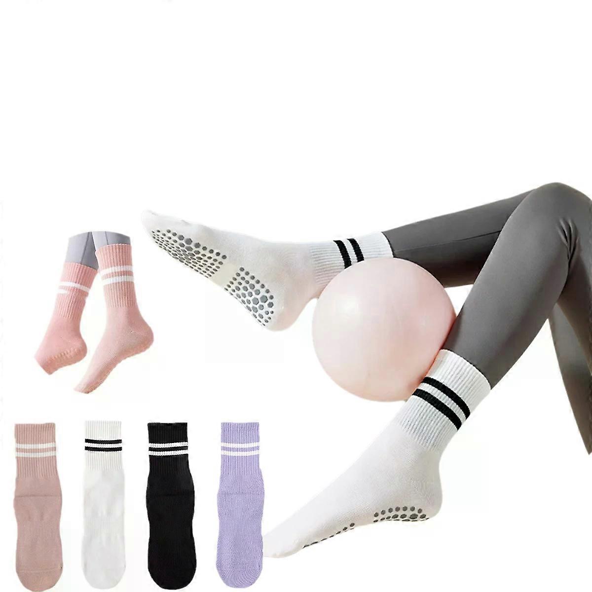 4 pairs of women's pure-colored dance socks, indoor Pilates socks, anti-slip yoga socks, and floor socks