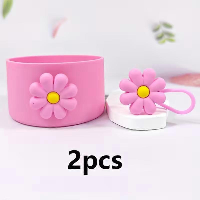 2pcs Cup Accessories Set for Stanley Tumbler, Including Silicone Boot, Flower Straw Cover Cap for Stanley 30&40oz Tumblers Cups