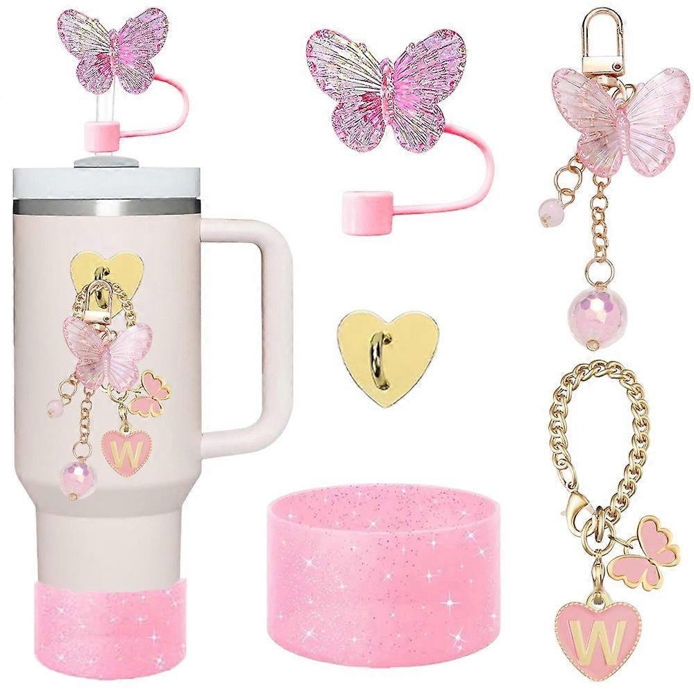 5pcs Cup Accessories for Stanley Cup 30oz 40oz Includes Butterfly Straw Cover Cap Silicone Boot Butterfly Charm Letter Chain