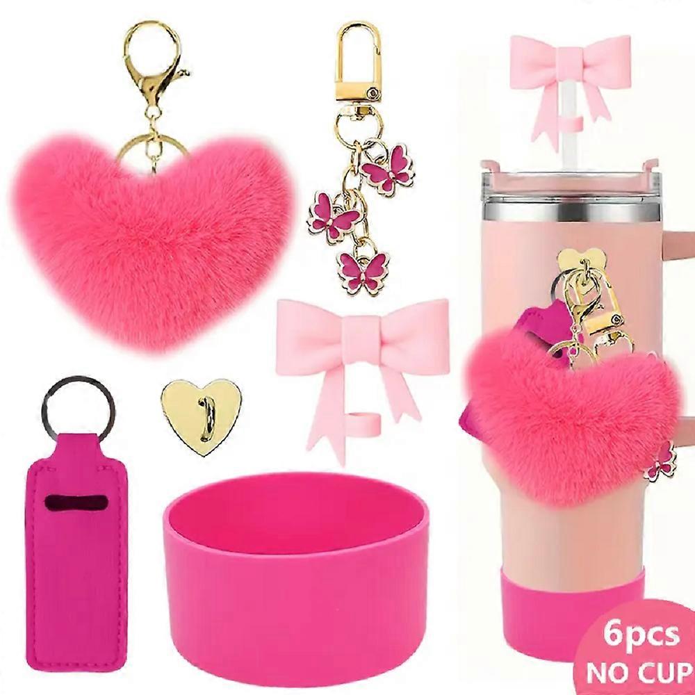 6pcs Cup Accessories Set for Stanley Cup Including 10mm Bow Straw Cover Butterfly Charm Lipstick Holder and Silicone Boot