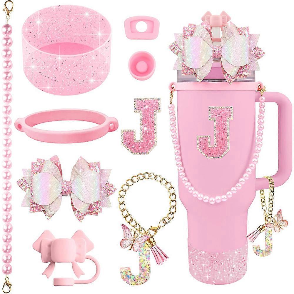 9pcs Cup Accessories for Stanley Cup 30oz 40oz Includes Bow Straw Cover Cap Silicone Boot Handle Charm Initials Sticker