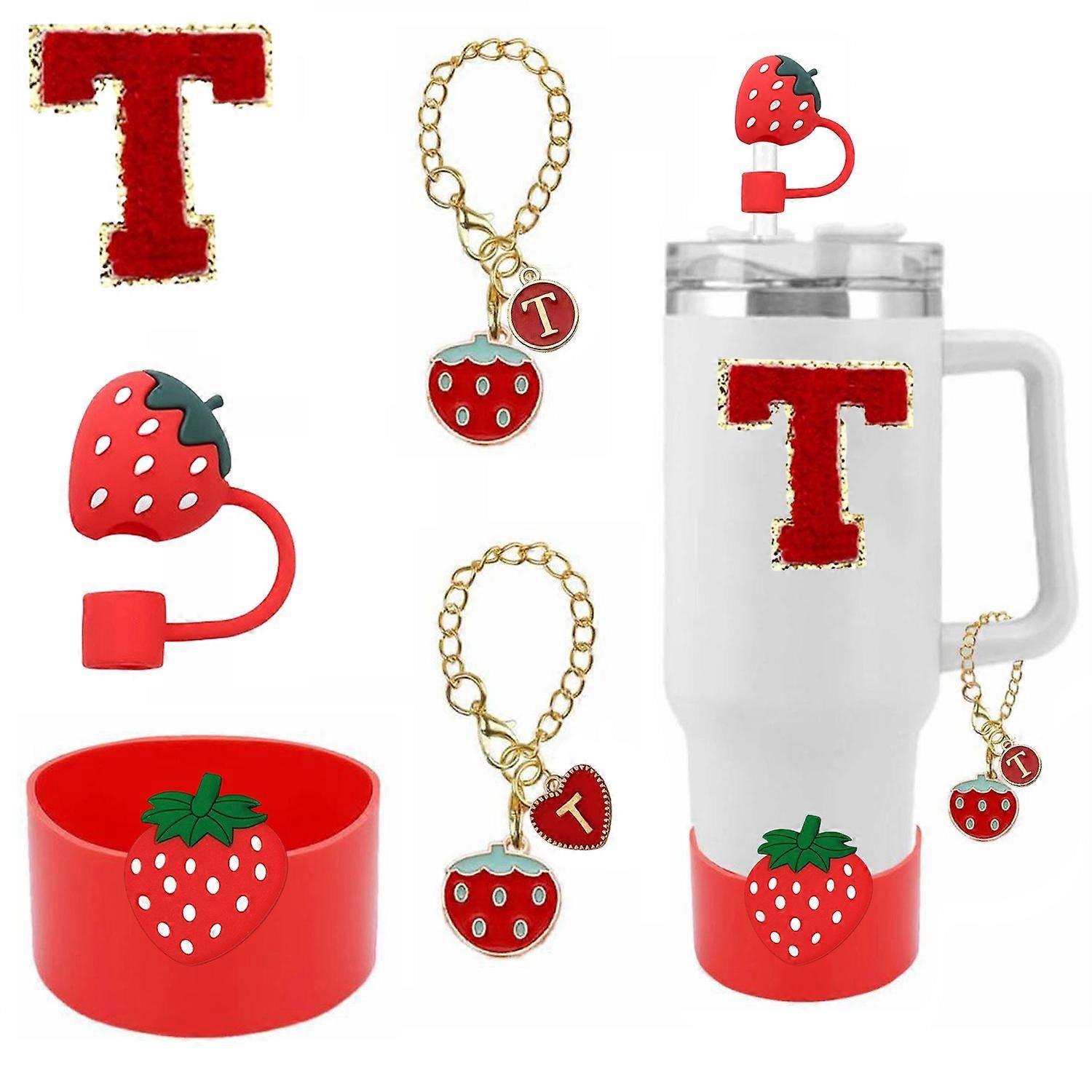5pcs Cup Accessories Strawberry Design for Stanley 30oz 40oz Tumbler Cup Including Silicone Straw Topper Cover for 40oz Tumbler