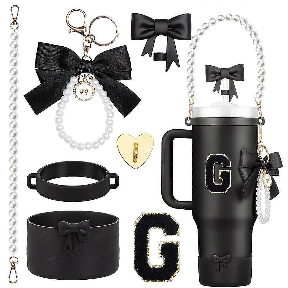 7Pcs Black Tumbler Cup Accessories Set - Bow Straw Topper, Cute Bow Charm, Silicone Boot with Bow Design, Water Bottle Handle