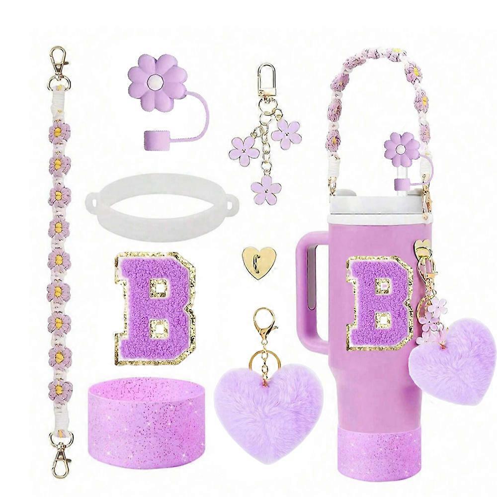 8pcs Cup Accessories for Stanley Cup 30oz 40oz Includes Flower Straw Cover Cap Silicone Boot Handle Charm Initials Sticker