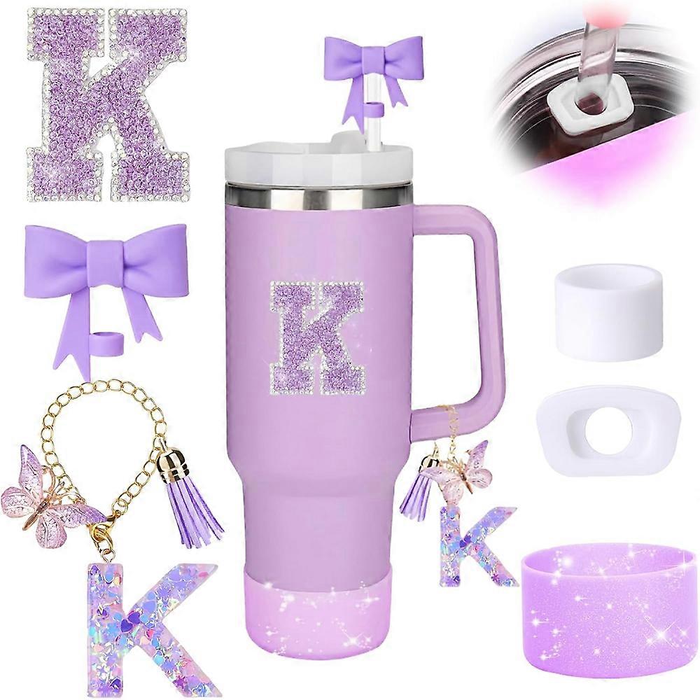 6pcs Accessories Set for Stanely 30oz 40oz Tumbler Including Glitter Initial Sticker 10mm Straw Topper Cover, Resin Letter Charm