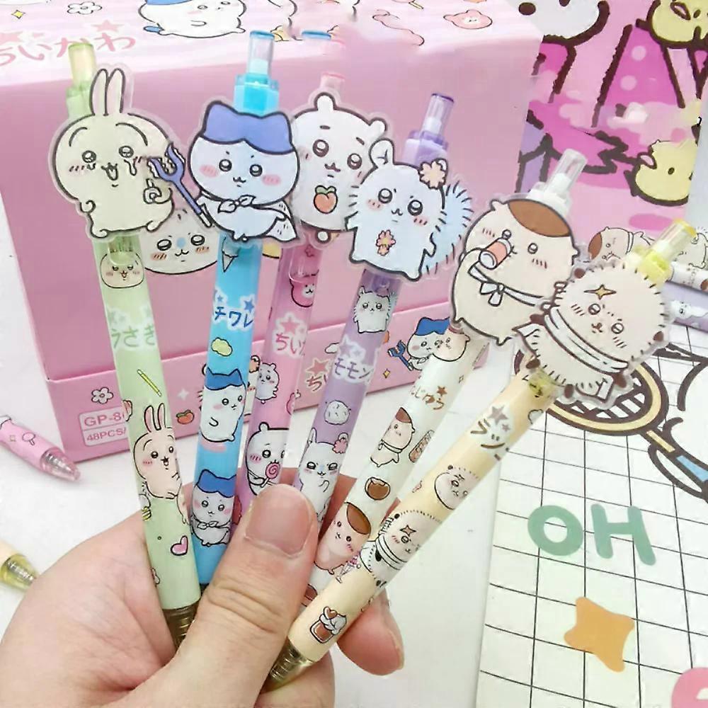 6Pcs/Set Kawaii Chiikawa Press Gel Pens For Writing Cute Cartoon 0.5mm Black Ink Neutral Pen Office School Supplie Kids Gifts