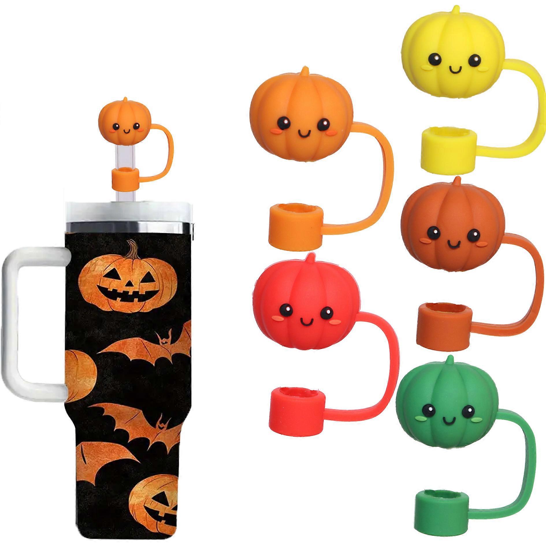 4Pcs/5pcs Tumbler Cup Straw Covers for 30oz 40oz Tumbler Cup- Reusable Silicone Pumpkin Straw Toppers for Fall & Halloween