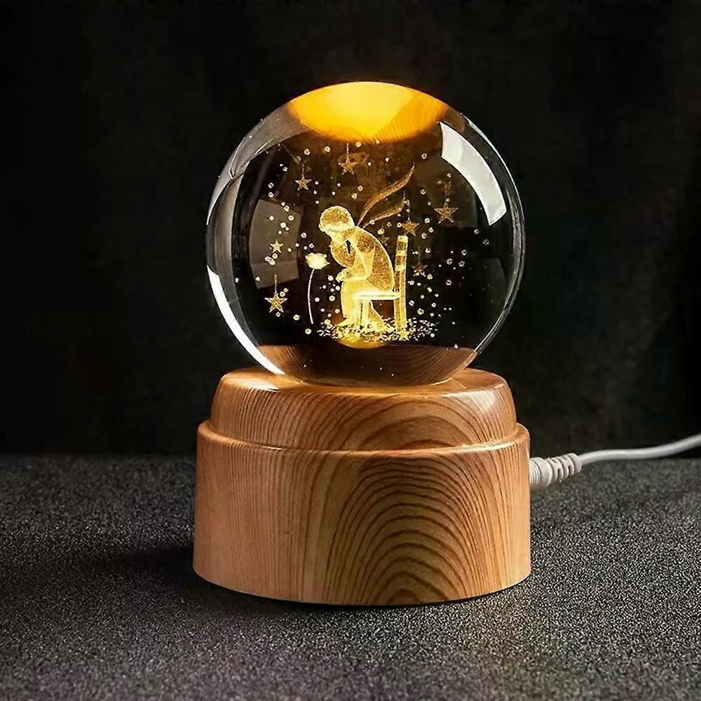 NEW Cartoon Stitch Series Ball Stitch Pikachu Mickey Mouse Rotating 3D Crystal Ball Night Light Laser Carving Children's Gifts