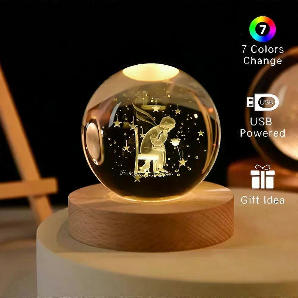 6cm 3D Crystal Christmas Night Light Wooden Base Seven Spectral Colors LED Gift for Boys and Girls