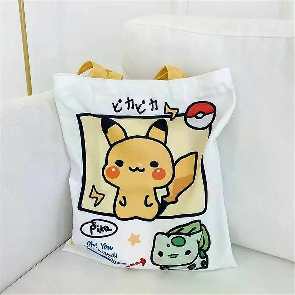 Large Capacity Anime Pokemon Pikachu Canvas Shoulder Bag Psyduck Squirtle Women's Casual Handbag Reusable Women's Shopping Bag