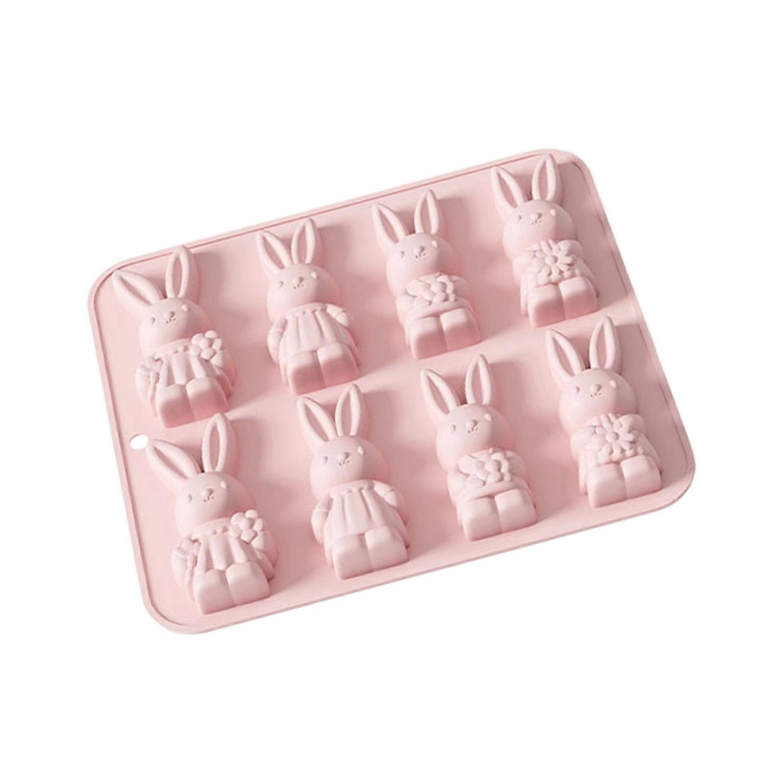 Easy Releases French Chocolate Mousse Mold Silicone Easter Rabbit Shape Dessert Baking Mould for Parties Pink