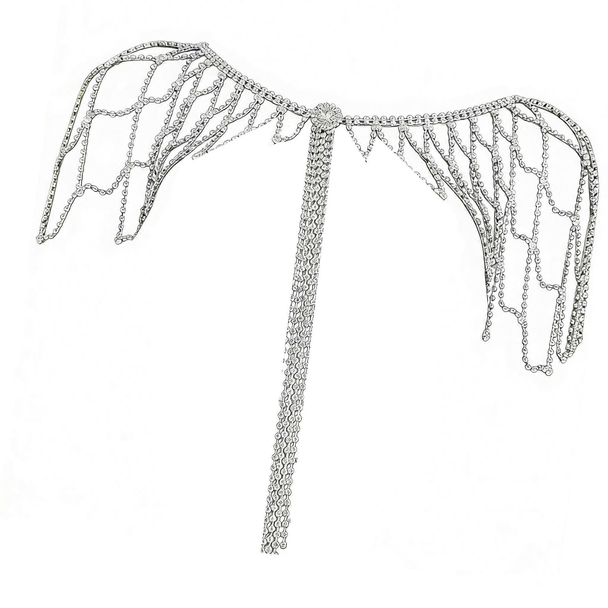 Quick Closure Rhinestones Adorned Bridal Shoulder Necklace For Comfort Wedding Parties And Celebrations Silver