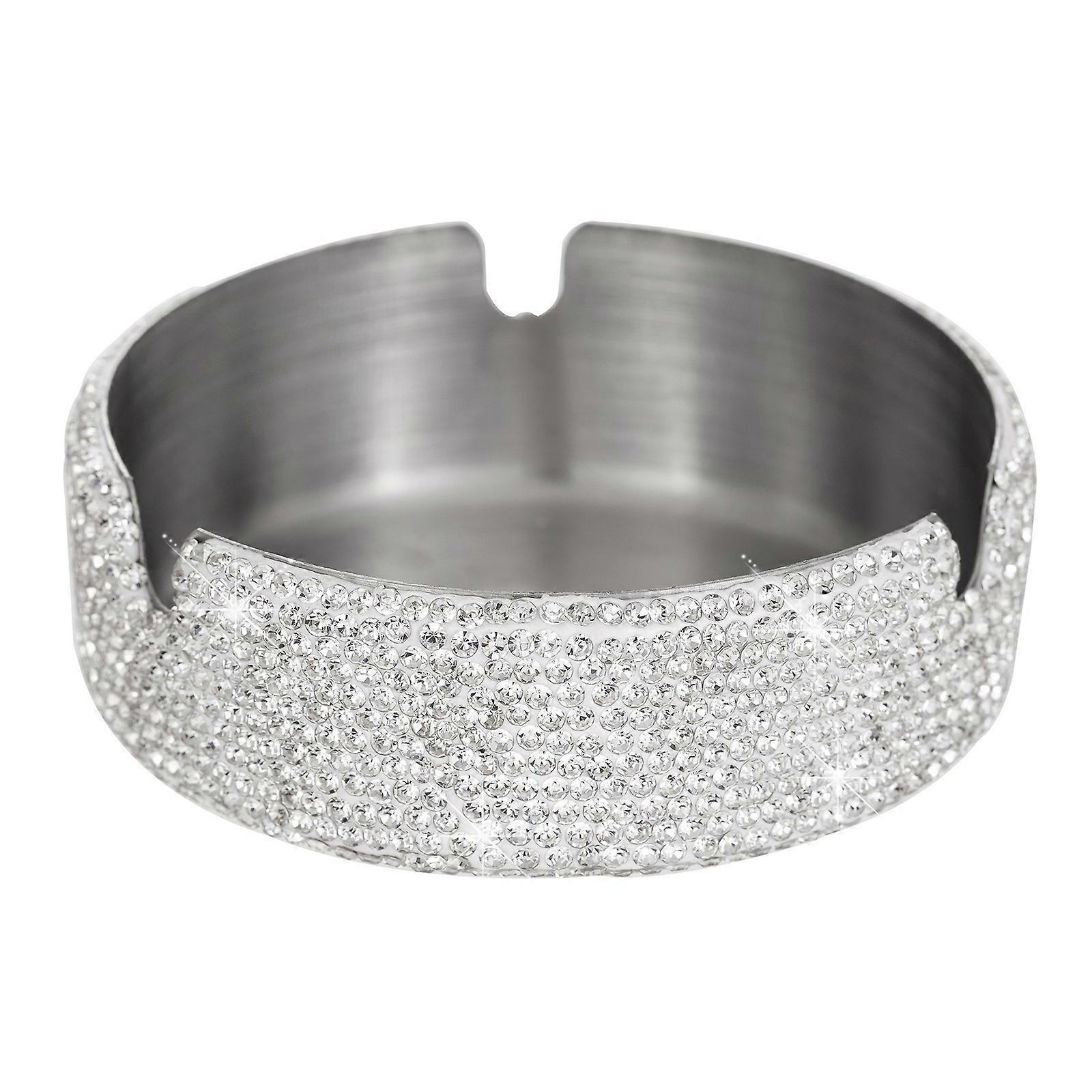 Sparkling Rhinestones Ashtray Stainless Steel Ashtray for Vehicle and Indoor Decoration 8.6x2.6cm Light Weight Portable White