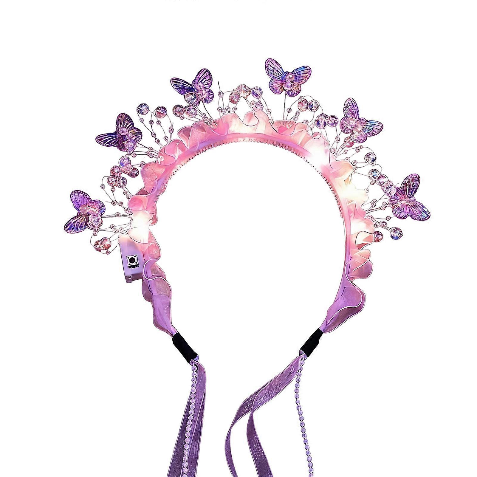 Lovely Glowing Hairband Butterfly Design Hairhoop for Children Girl Parties Concerts Easy to Wear Hair Accessory Purple
