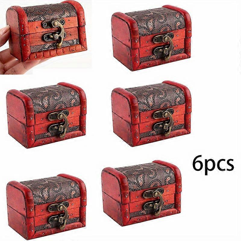 6pcs Vintage Wooden Jewelry Boxes with Lock,Treasure Chest Design for Rings,Small Keepsakes,Red,Black,Stackable,Handcrafted