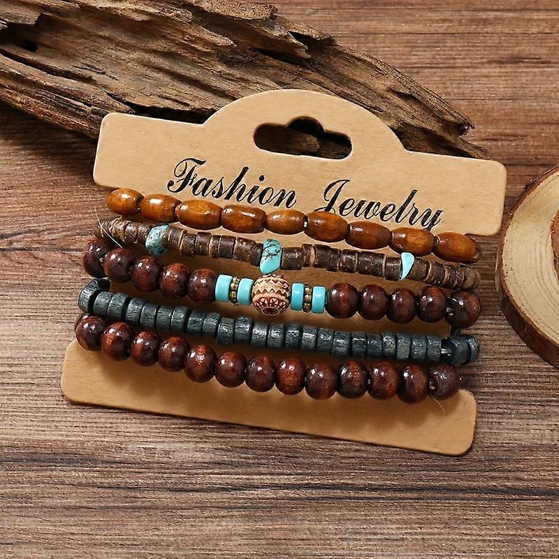 Minimalist Chic Men's Wood Bead Bracelet Set (5pcs) – No Plating/No Mosaic Spiritual Accessory, Perfect Holiday/Birthday Gift