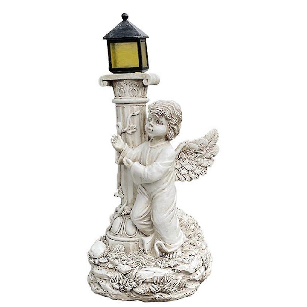 Roman Column Angel Statue Solar Ornament for Home Garden Courtyard Outdoor Decoration Figurines Retro Resin Crafts