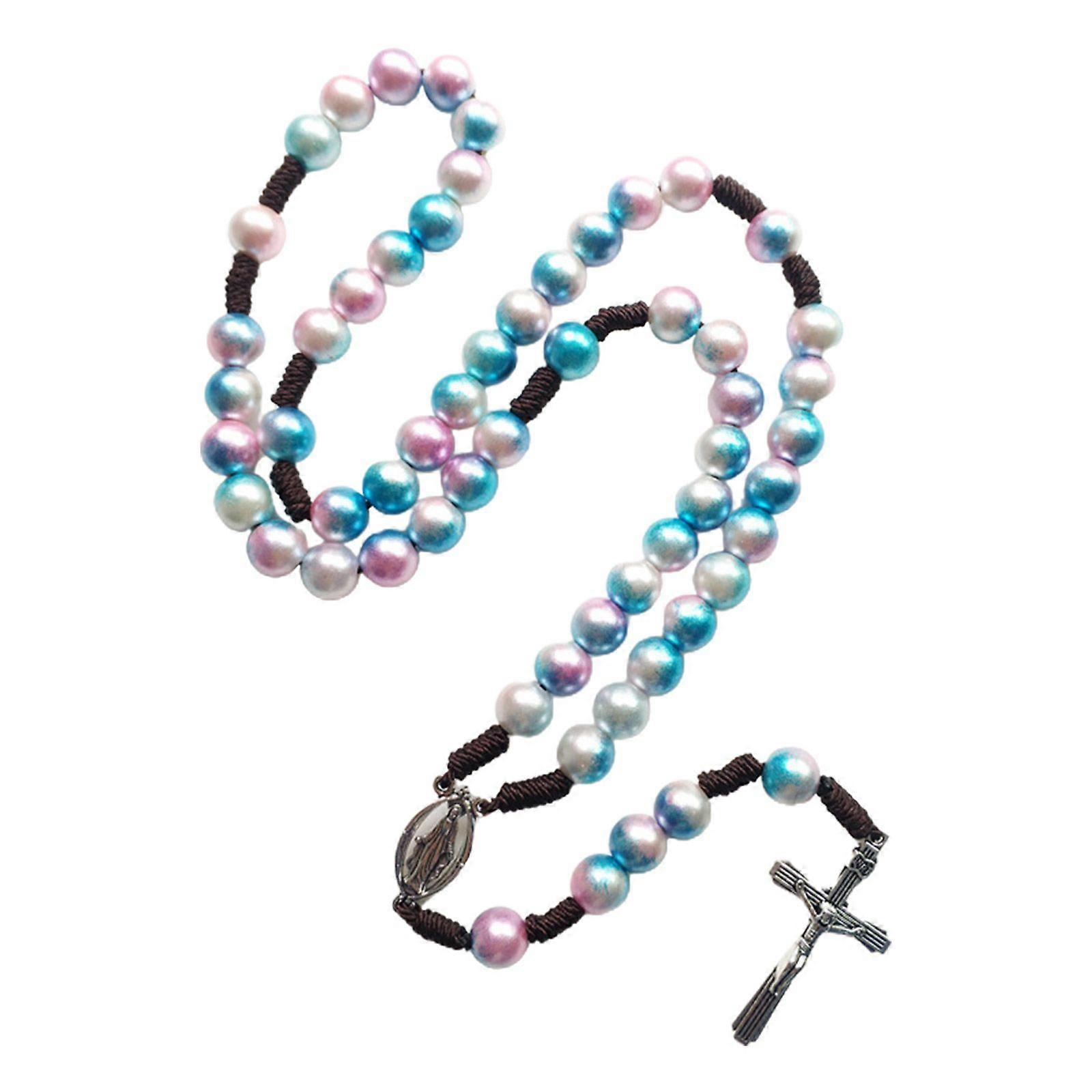 10mm Acrylic Beads Rosary Necklace with Jesus Crucifix Cross Pendant Religious