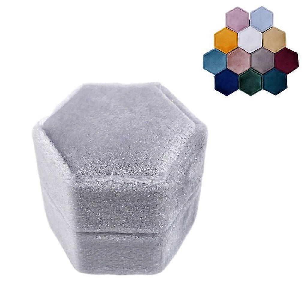 Hexagon Velvet Ring Bearer Box - Premium Gorgeous Vintage Single Ring Display Holder with Detachable Lid for Valentine's Day,Proposal, Engagement, Wed