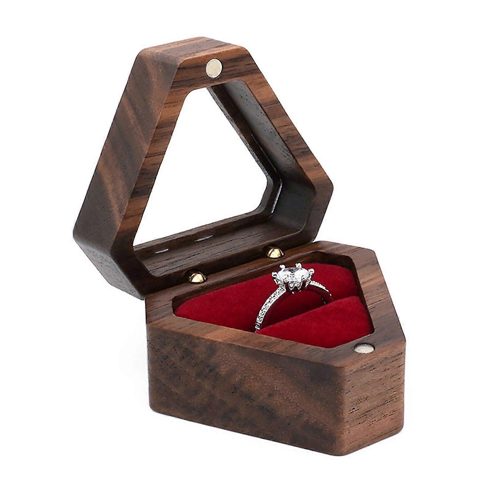 Wood Ring Box for Triangle Shape Jewelry Organizer Soft Interior Holder for Wedding