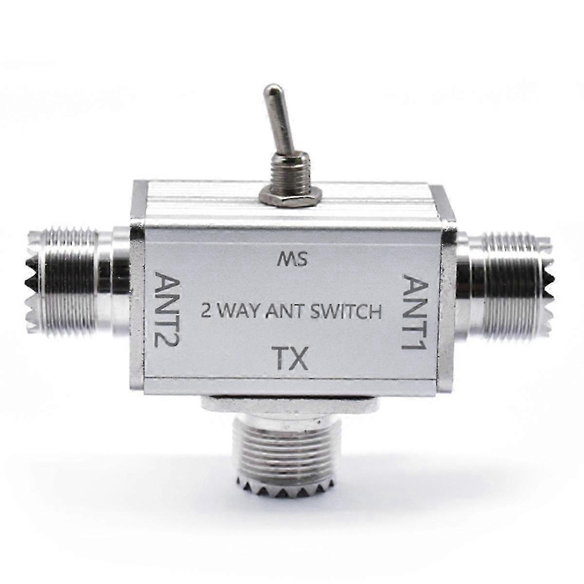 2-Way Coaxial Antenna Switch. 1 input & 2 outputs rotary switch with OFF position and ground protection function. Compatible with SO-239 connectors. Features reverse polarity protection to help safeguard connected equipment. Switch position indicates the active antenna output, supporting single-transceiver dual-antenna configurations. Specifications: - Model: SL-16/BNC - Frequency Range: 1–30 MHz - Maximum Power Handling: 100 W - Dimensions: 73 × 58 × 25 mm (including connectors) - Connector Type: SO-239 - Color: Silver - Housing Material: Aluminum Alloy Package Includes: - 1 × 2-Way Antenna Switch Note: Actual product color may vary slightly due to monitor settings and lighting conditions. Dimensions are subject to a tolerance of ±1–3 cm.