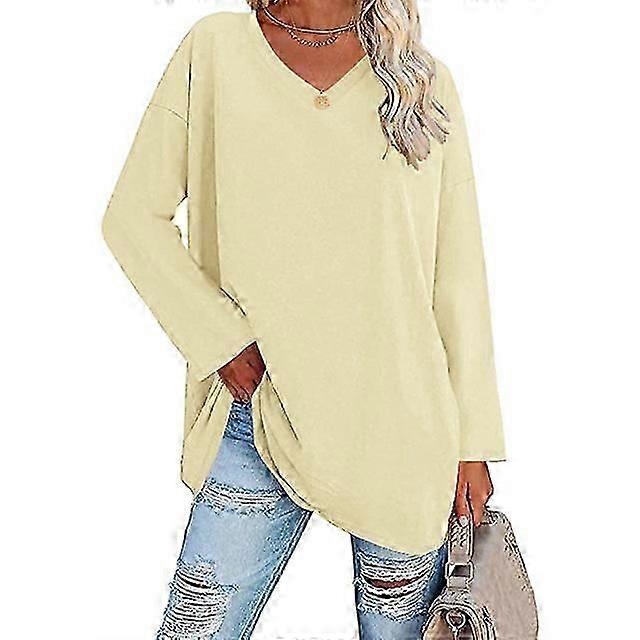 JWL-Women's Loose Long Sleeve Fashion V-neck Knit Top Large Pluus Size Tops Women Autumn Summer Solid Blouse Long Sleeve V Neck