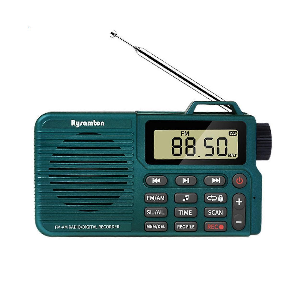 Rysamton AM/FM Radio, Bluetooth Pocket Radio Bass Speaker, Support Micro-SD Card and Record, Long Battery Life-Green